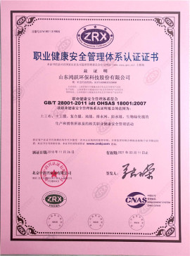 西藏职业健康安全管理体系认证证书